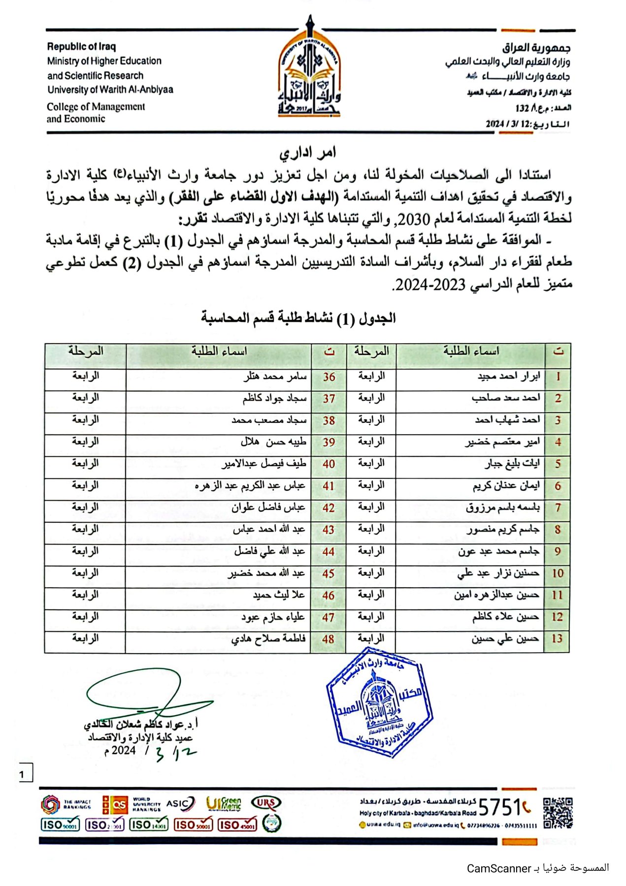 The College of Administration and Economics, along with its students, organized a food banquet for the poor at Dar Al-Salam as part of their voluntary work and humanitarian efforts to support the community.
