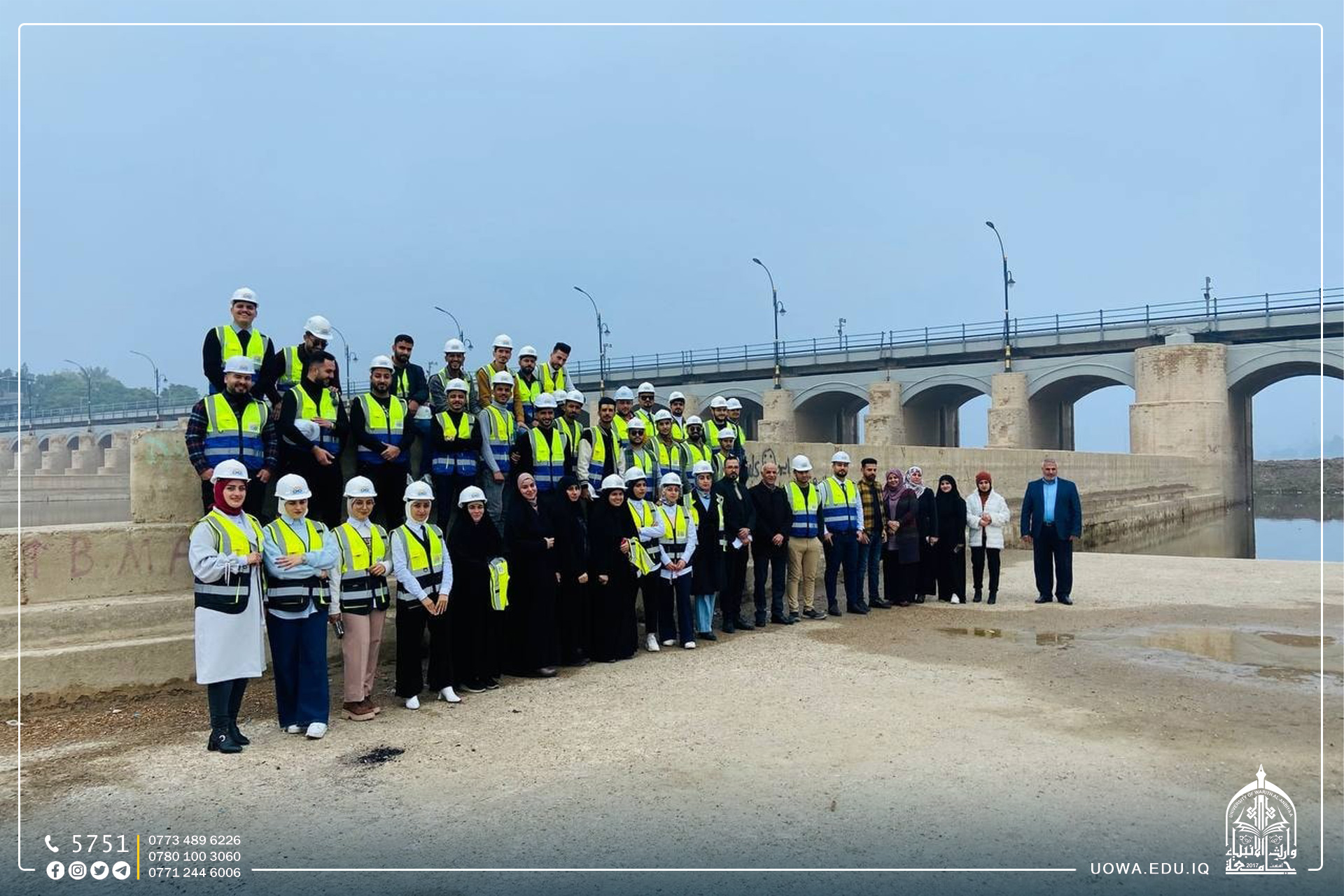 The Civil Engineering Department organized a scientific visit for fourth-year students, accompanied by faculty members, to the Hindiyah Dam project, during which they learned about the history of the dam and its construction, in addition to its capacity for water and the electrical energy generated from it, and how the gates work.This visit came to support the educational process to achieve direct positive effects on the life of the engineer, through presenting the facts of things, seeing the practical application of what the student learns from the engineering sciences, and interacting with direct, realistic experiences during the visit as a result of observation and observation.