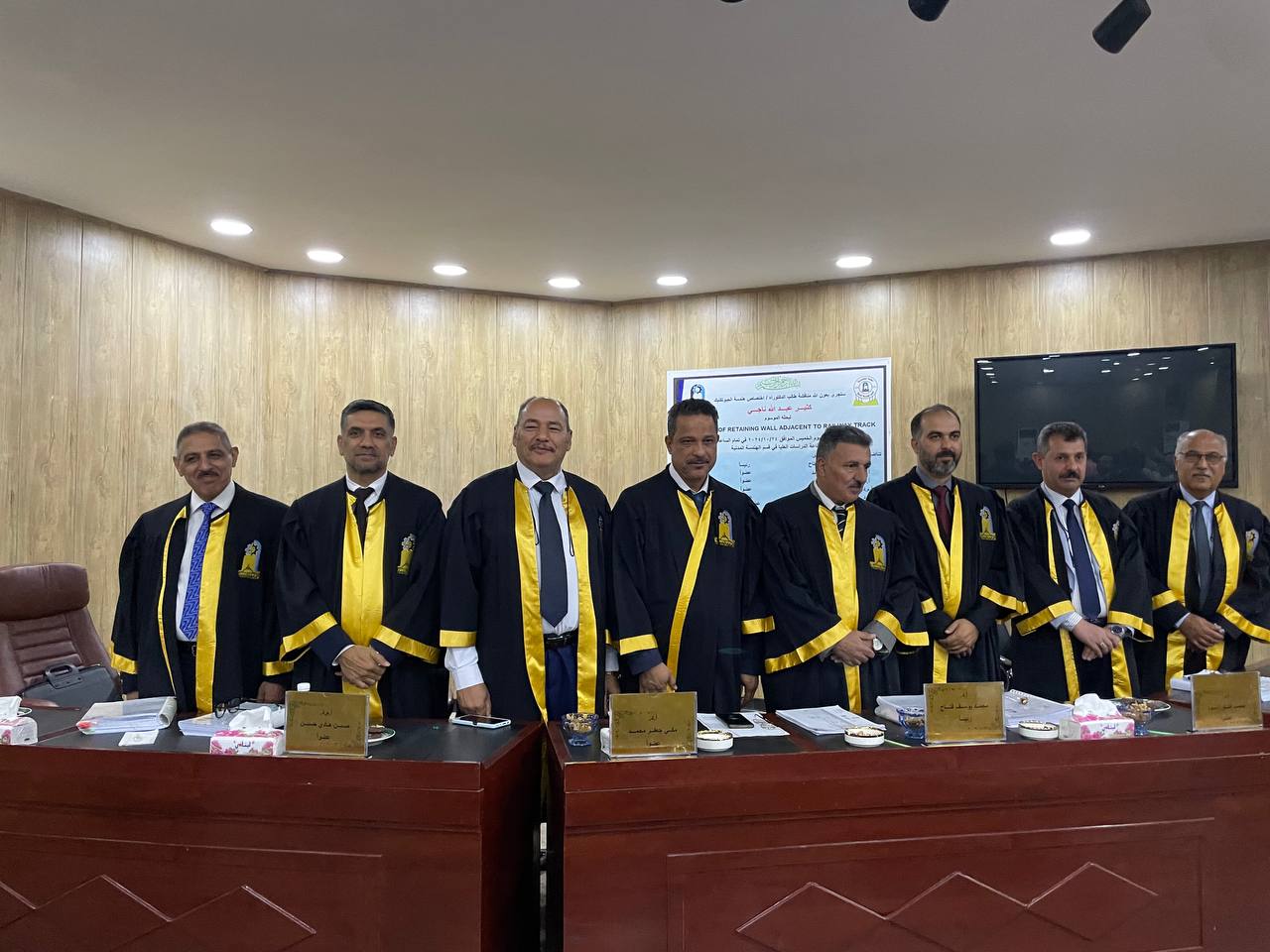 Selection of the Dean of the College of Engineering, Assistant Professor Dr. Hussein Hadi Al-Awadi, member of the discussion of the doctoral thesis at the University of Technology in the Department of Civil Engineering in the field of geotechnical engineering entitled (Response of Retaining Wall Adjacent To Railway Track).