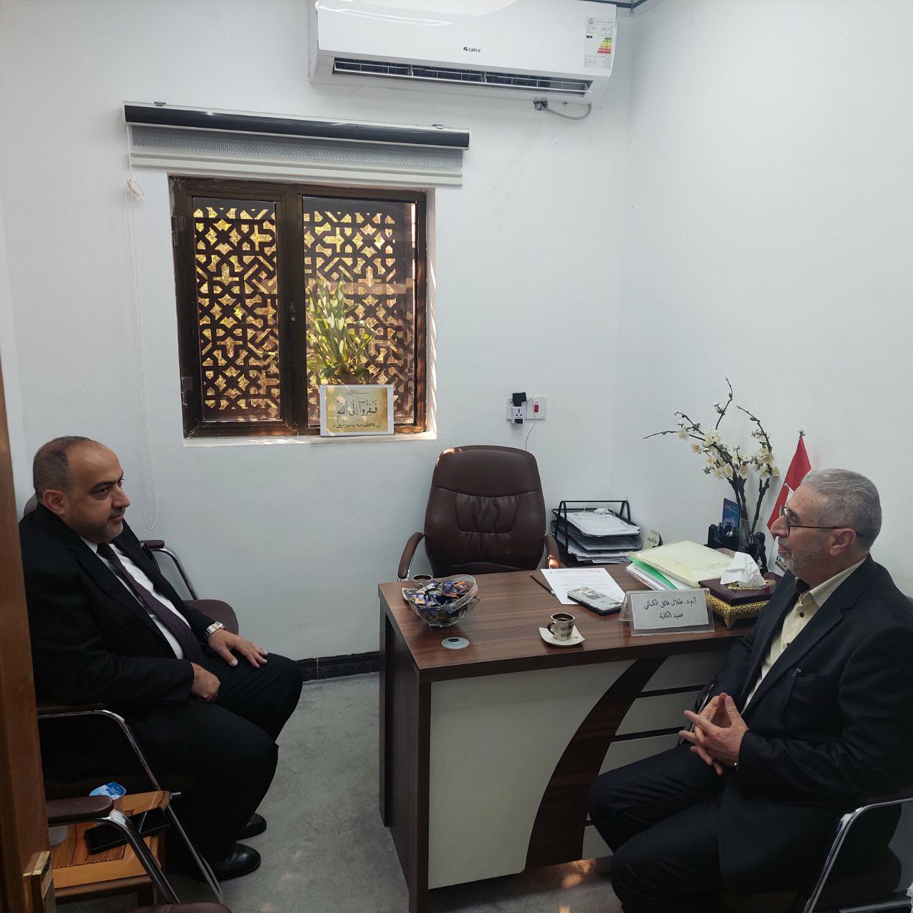The President of Warith Al-Anbia University (peace be upon him), Professor Ibrahim Saeed Al-Hayawi, paid an inspection visit to the College of Islamic Sciences on Monday, 10/14/2024. During the visit, he discussed with the Dean of the College, Professor Talal Al-Kamali, a number of important issues related to academic and administrative affairs.