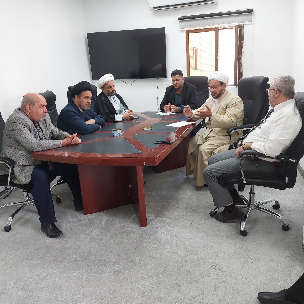 The Dean of the College of Islamic Sciences at the University of Warith al-Anbiya (peace be upon him), Dr. Talal Al-Kamali, held a meeting on Sunday 13/10/2024 with the Director of the Institute of History and Biography Research of the Office of Islamic Propagation in the Holy Qom, Dr. Hamidreza Motahhari, in the presence of professors and representatives of Al-Mustafa International University, namely Dr. Ali Allah Akbari, Dr. Abbas Al-Issawi, and Dr. Muhammad Al-Bandawi.