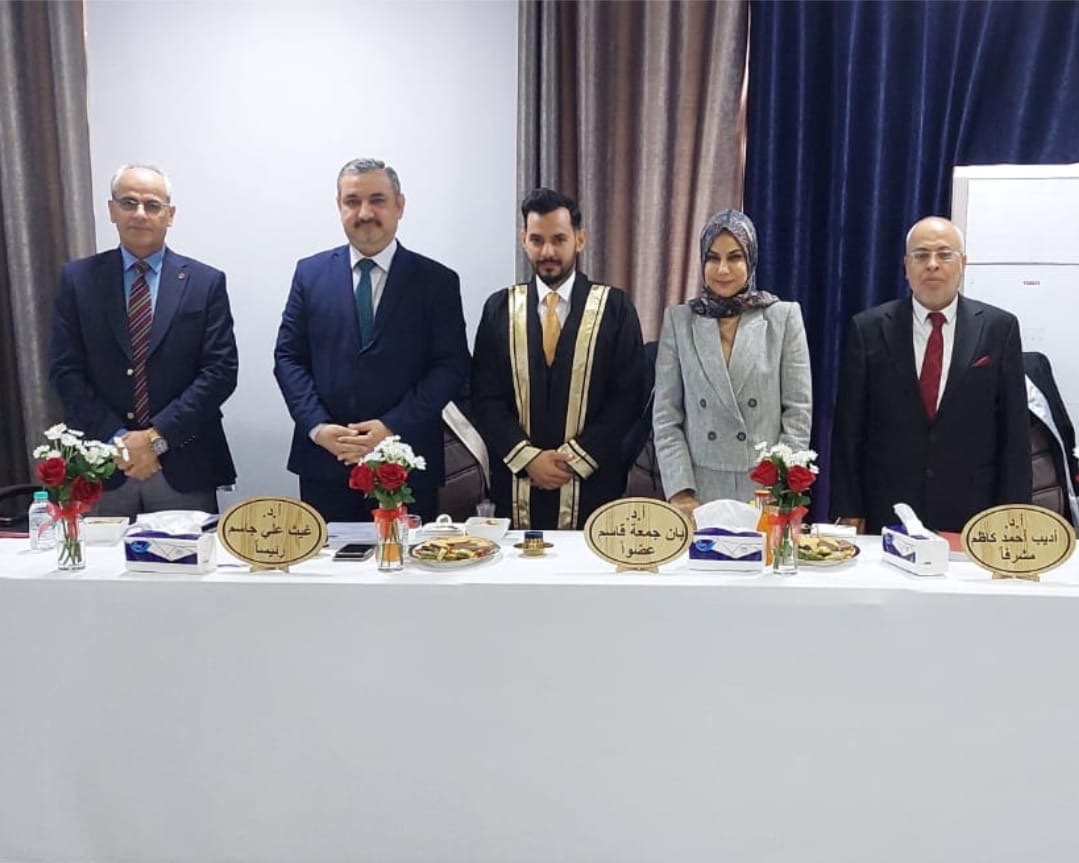 Prof. Dr. Adeeb Ahmed Al-Zubaidi, a faculty member in the Pharmacology Branch / College of Medicine / University of Warith Al-Anbiyaa, participated in the membership of the discussion committee of doctoral student Shaima Muhammad Ali in the Pharmacology Branch / College of Medicine / Al-Nahrain University on Sunday 5/7/2023 as Supervising the completion of her thesis tagged:Effects of Valproic Acid and Huperzine A on Systemic Bone Loss, Inflammatory and Oxidative Stress Parameters in Rheumatoid Arthritis: An Experimental Study.The discussion committee consisted of the distinguished professors:1- Prof. Ahmed Rahma Ali / Chairman2- Prof. Ban Juma Qasim / member3- Prof. Faiq Isho Kurial / member4- Prof.. Muhammad Qasim Yahya/ member5- Prof.. Haider Faisal Ghazi / member6- Prof. Adeeb Ahmed Kazem Al-Zubaidi / member and supervisorThe thesis has been accepted successfully and with distinction