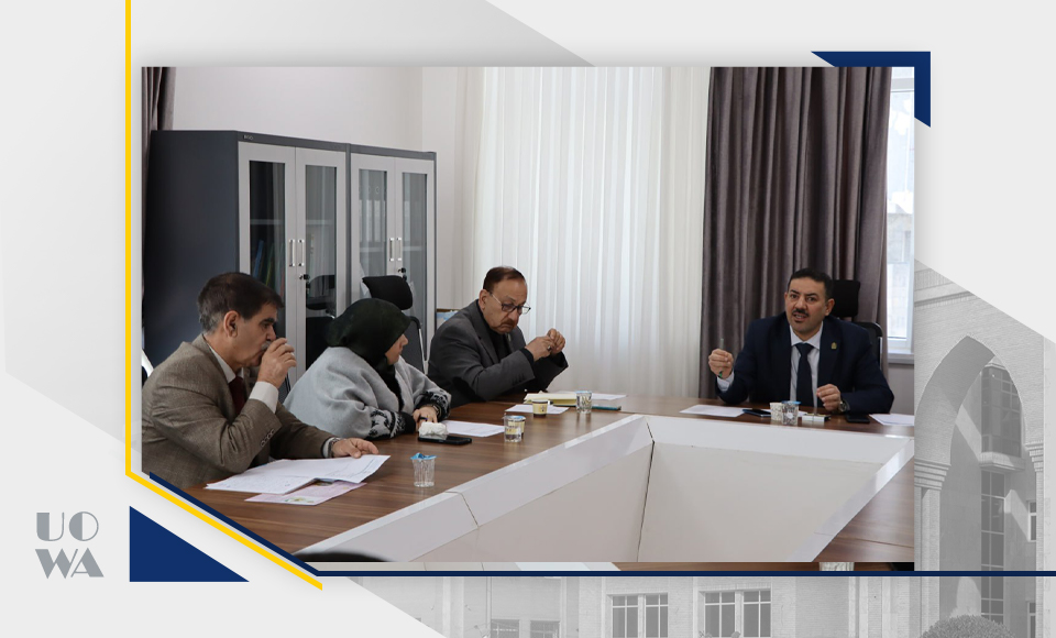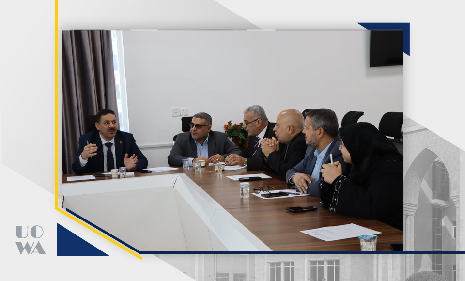 The College of Medicine Council at Warith Al-Anbia University (peace be upon him) held its regular session, headed by Professor Dr. Ali Abdul Saadoun, the respected Dean of the College, and attended by Assistant Professor Dr. Laith Muhammad, the Scientific Assistant, and Lecturer Dr. Anwar Sadiq, the Administrative Assistant, in addition to the respected heads of the branches.