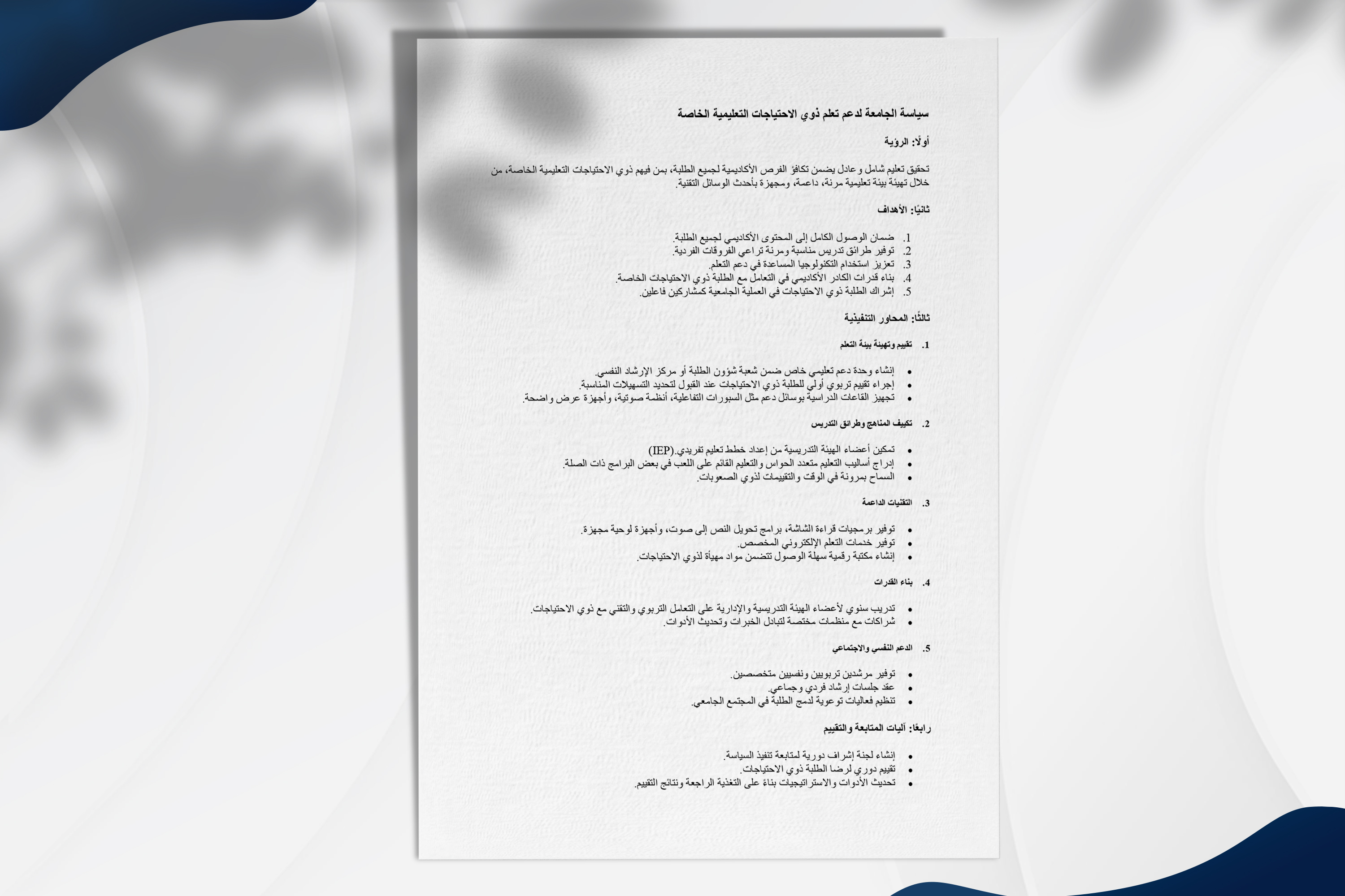 Implement annual training for academic and administrative staff on educational and technical engagement with students with special needs.