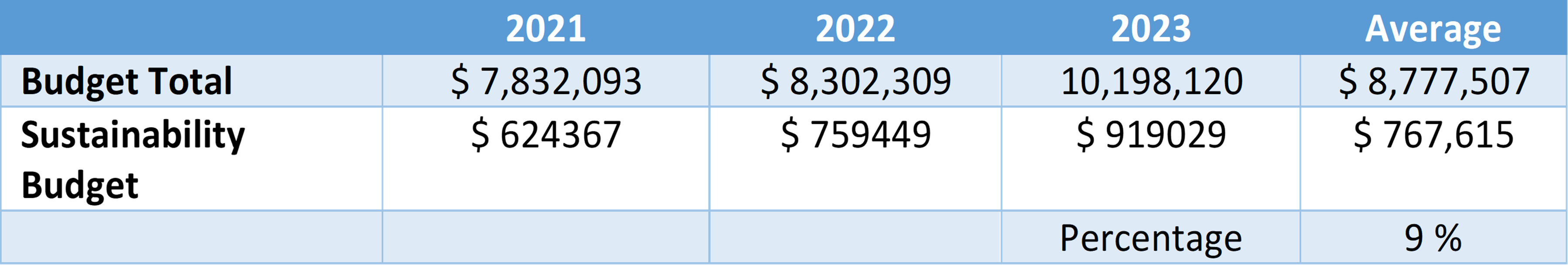 Average Annual Sustainability Budget: $979,803