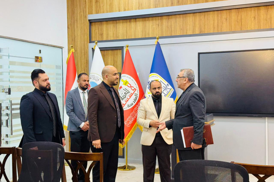 The College also received a visit from Dr Khalil Al-Tayyar, Adviser for External Relations and Public Affairs at the Holy Hussaini Shrine, to discuss mechanisms for implementing the provisions of the joint agreement. He was received by the Dean of the College, Associate Professor Dr Haider Al-Ghanmi, where emphasis was placed on expanding opportunities for practical training and keeping pace with the latest technological developments in the digital field.