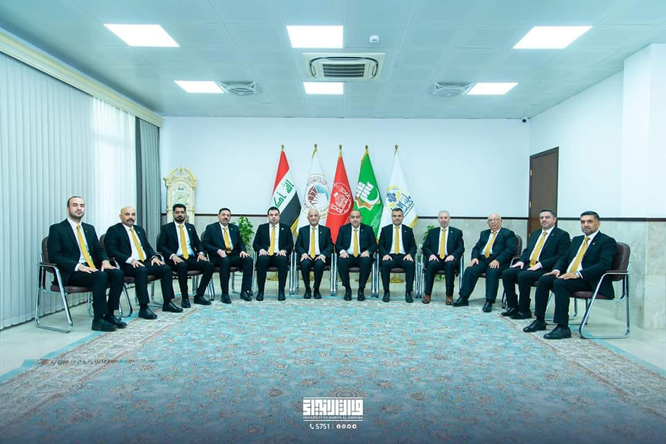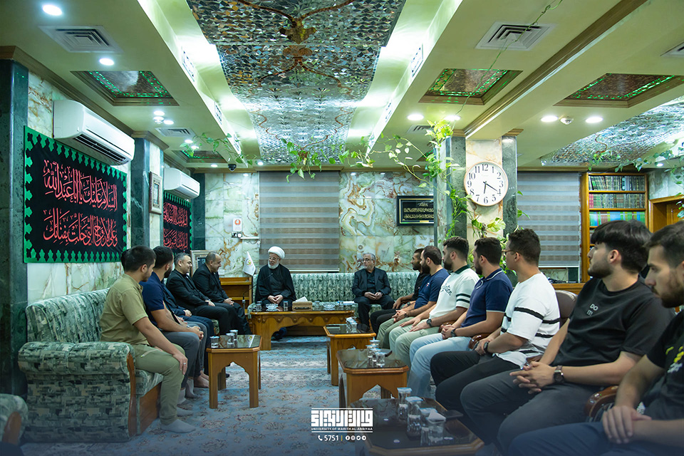 In his office, His Eminence, Sheikh Abdul-Mahdi Al-Karbalai (may his glory last), the legal guardian of the Holy Shrine of Imam Hussein, welcomed Professor Dr. Ibrahim Saeed Al-Hayawi, President of the University of Warith Al-Anbiyaa (PBUH), Professor Dr. Waqid Al-Moussawi, Vice-President of the University for Scientific Affairs, and several Arab guests taking part in the summer training programme.