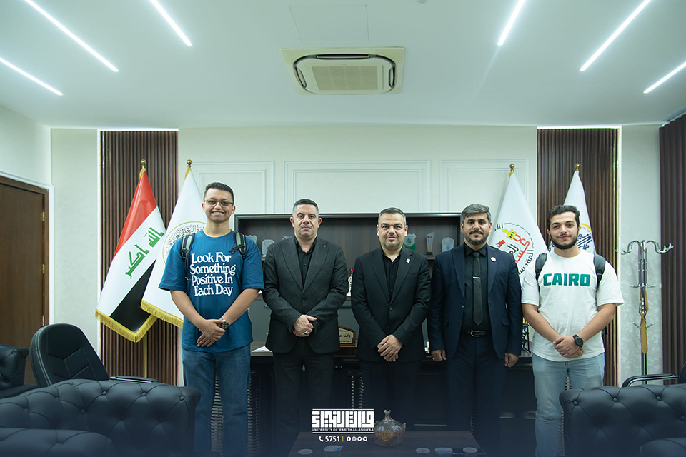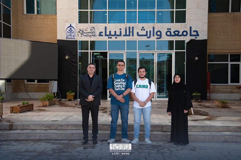 The University of Warith Al-Anbiyaa (PBUH) received a delegation of Egyptian students as part of the Student Exchange Programme for summer training. The Vice-President of the University for Scientific Affairs, Professor Dr. Waqid Al-Moussawi, and the Dean of the College of Nursing, Professor Dr. Murtada Al-Jubouri, met with the international students to discuss the training programmes that were prepared in cooperation between the Office of the Vice-President of the University and the College of Nursing.