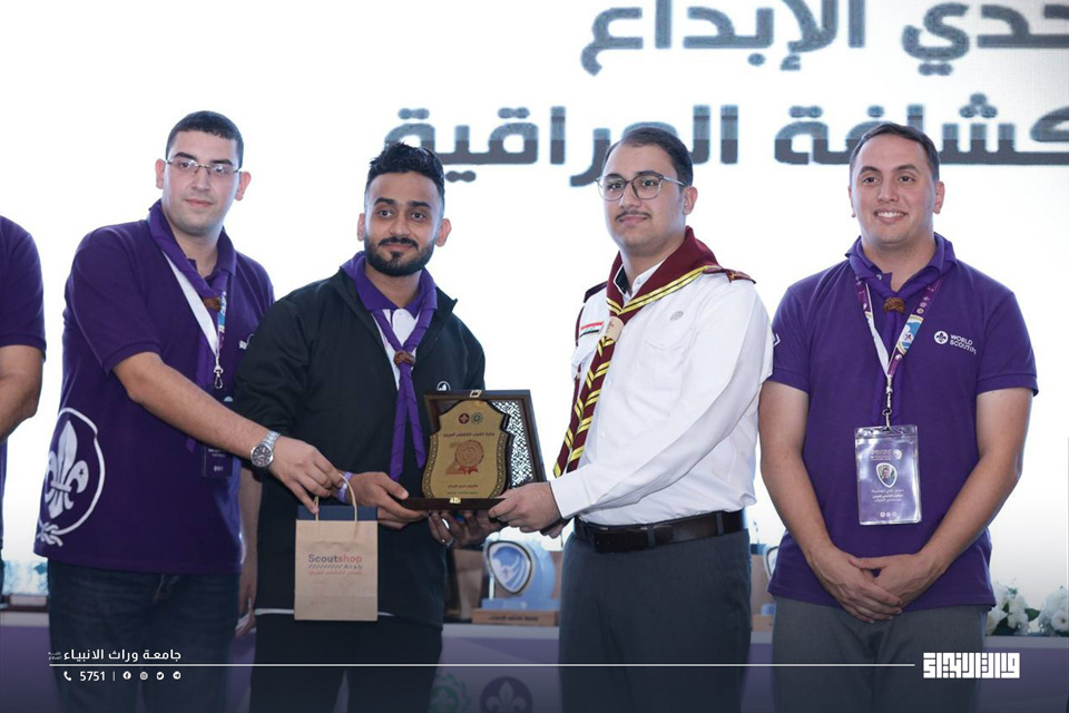 Students of the University of Warith Al-Anbiyaa achieved a distinguished milestone by securing fourth place at the Arab Scout Youth Award – Second Edition, hosted by the United Arab Emirates, for their innovative project “Iraq Scouts Application”.